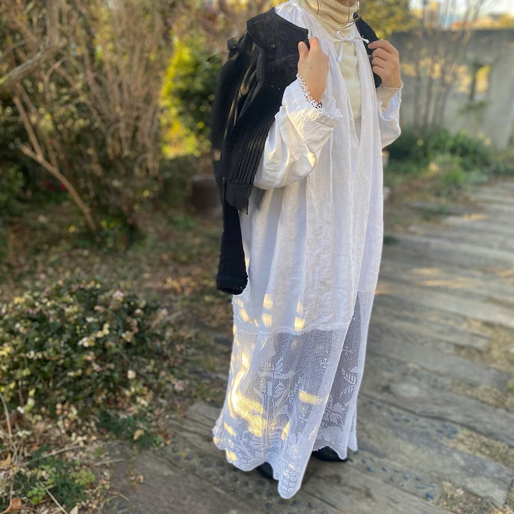 レースが美しい1900年代フランスアンティークチャーチドレス