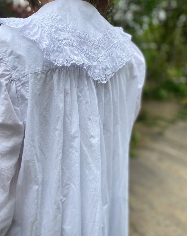 スカラップレースとピンタックが繊細で可愛い一枚。