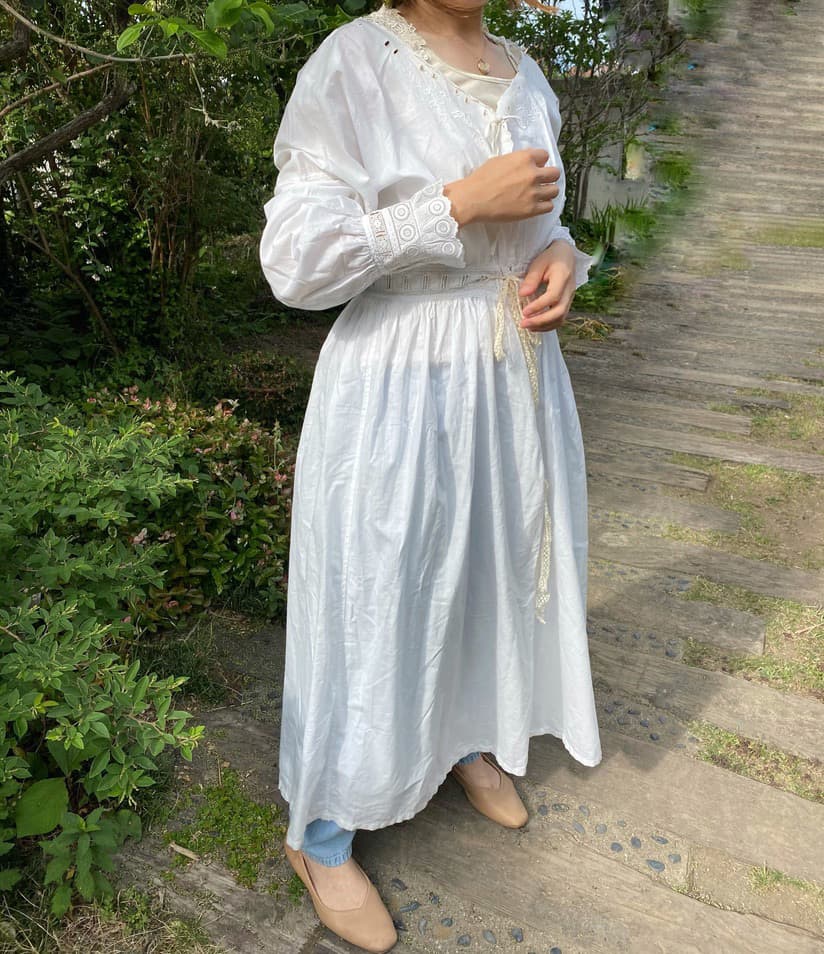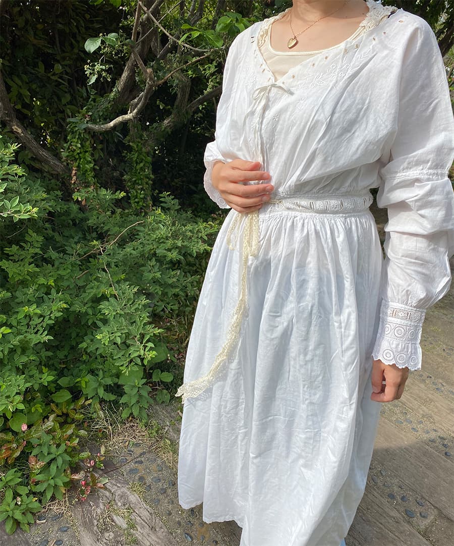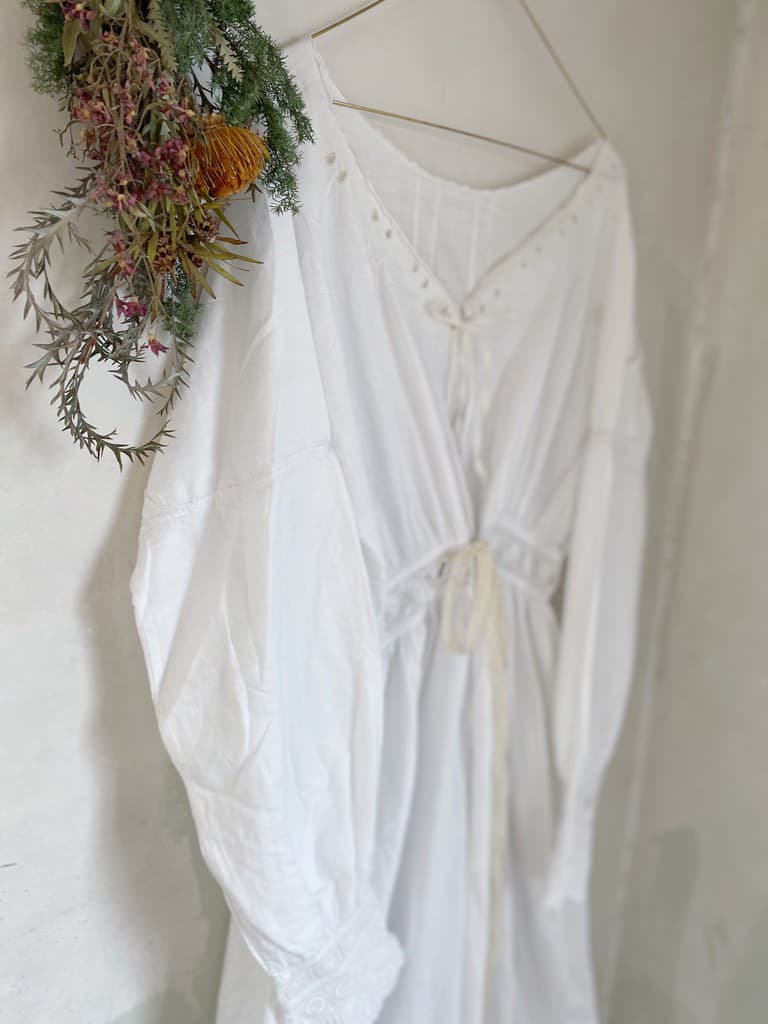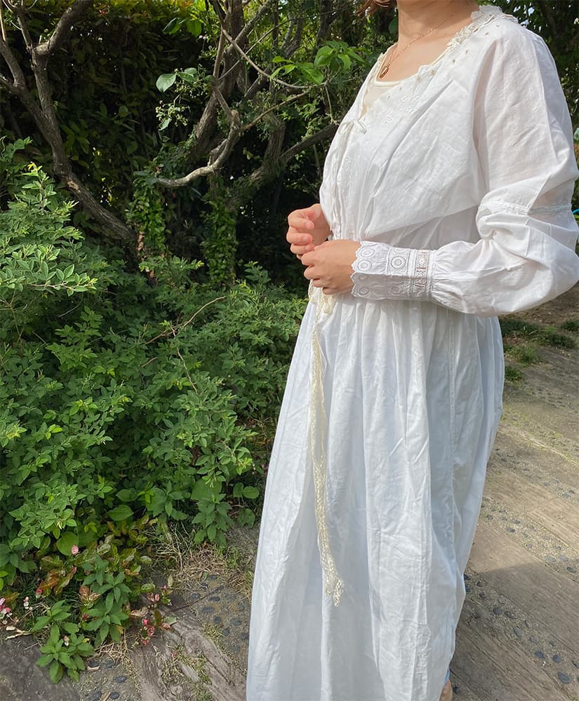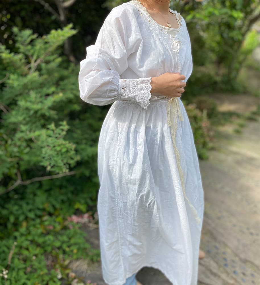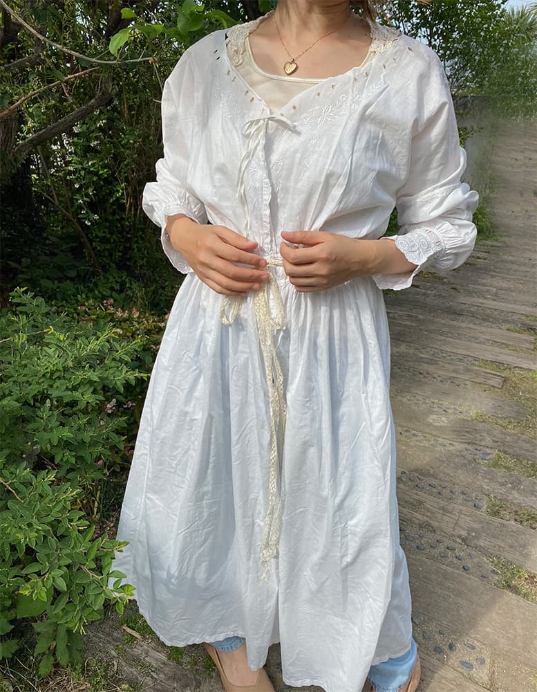 1900年代のアンティークナイトドレス。リボンを結んで留める仕様になっています。