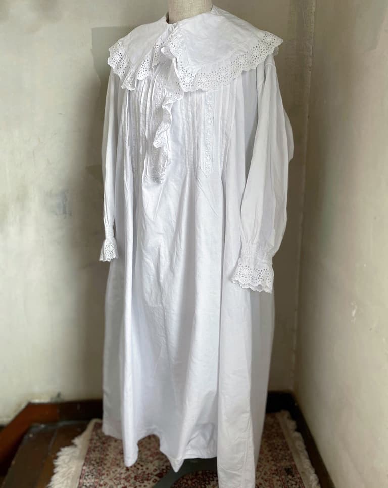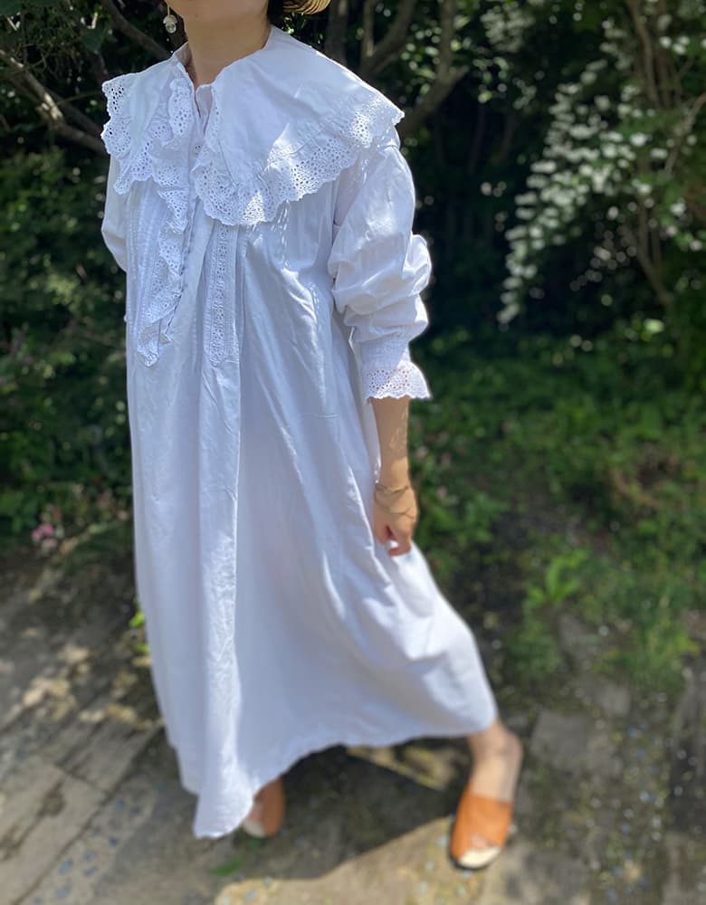 1900年代のアンティークナイトドレス。肩まである大きな襟が目を引くゴージャスなワンピース。