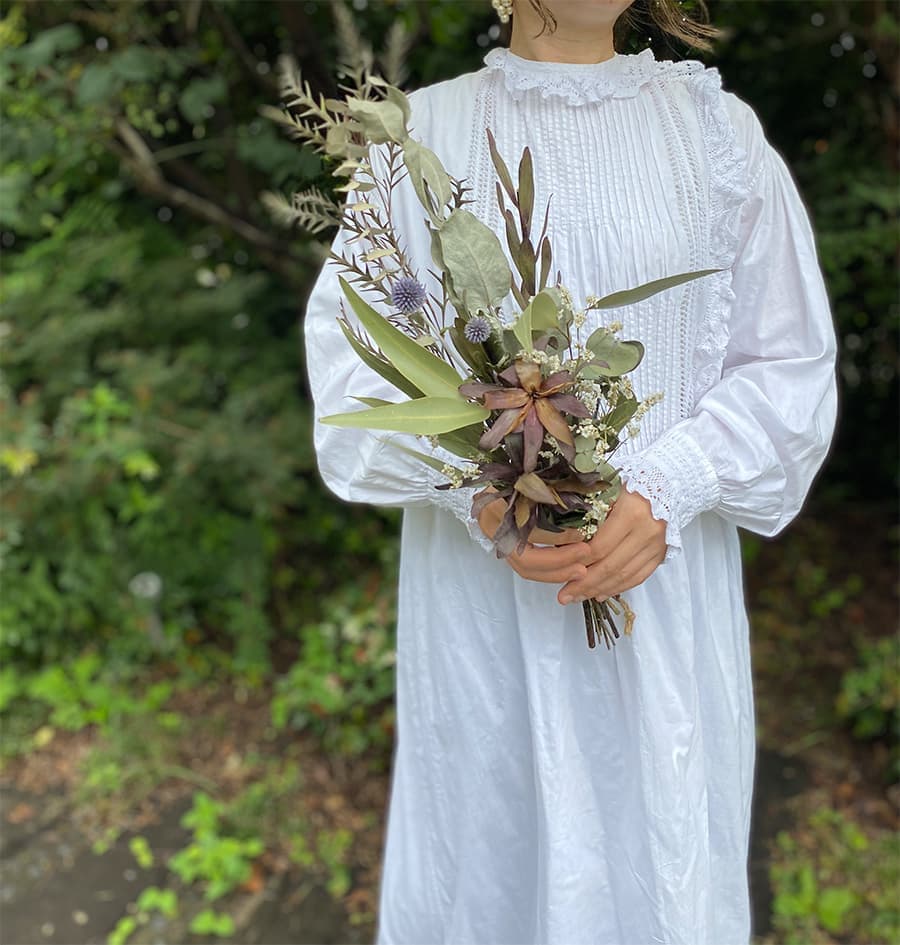 フェミニンな着こなしも、ベルトでブラウンジングしたり、ミリタリーパンツやデニムと合わせてカジュアルにも着こなしていただけます。バックスタイルはギャザーがたっぷりで360°どこから見ても可愛いワンピースです。