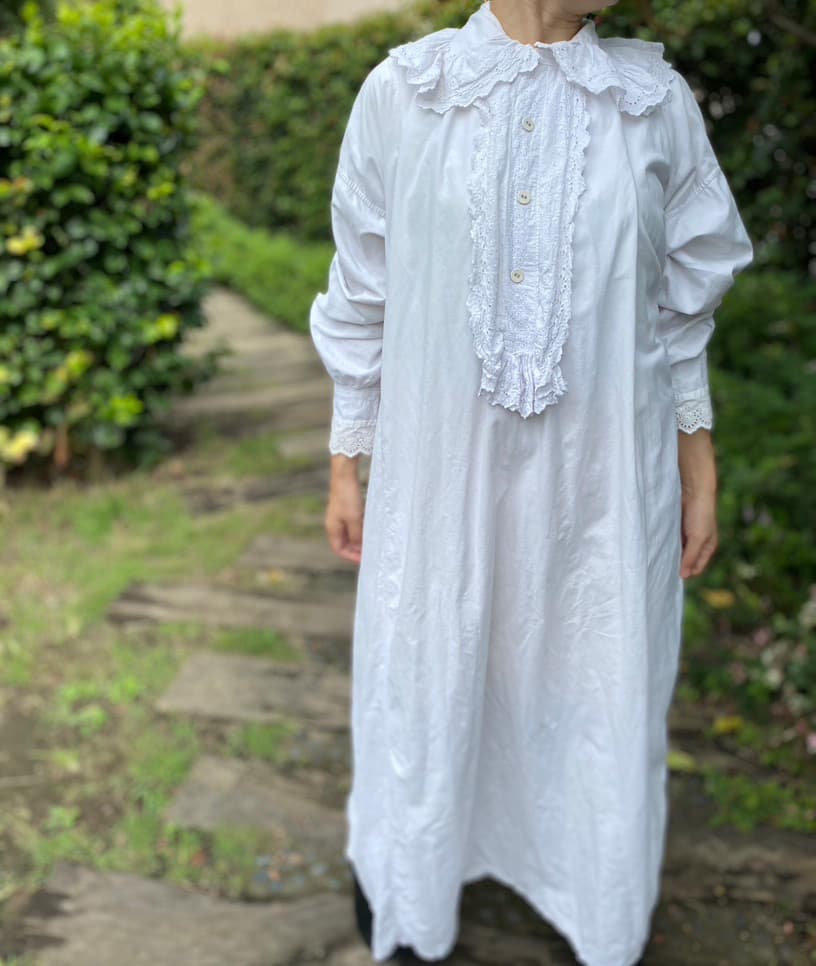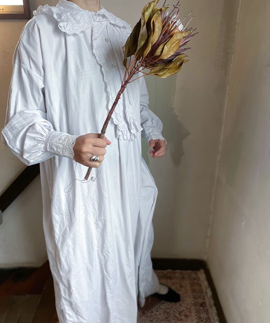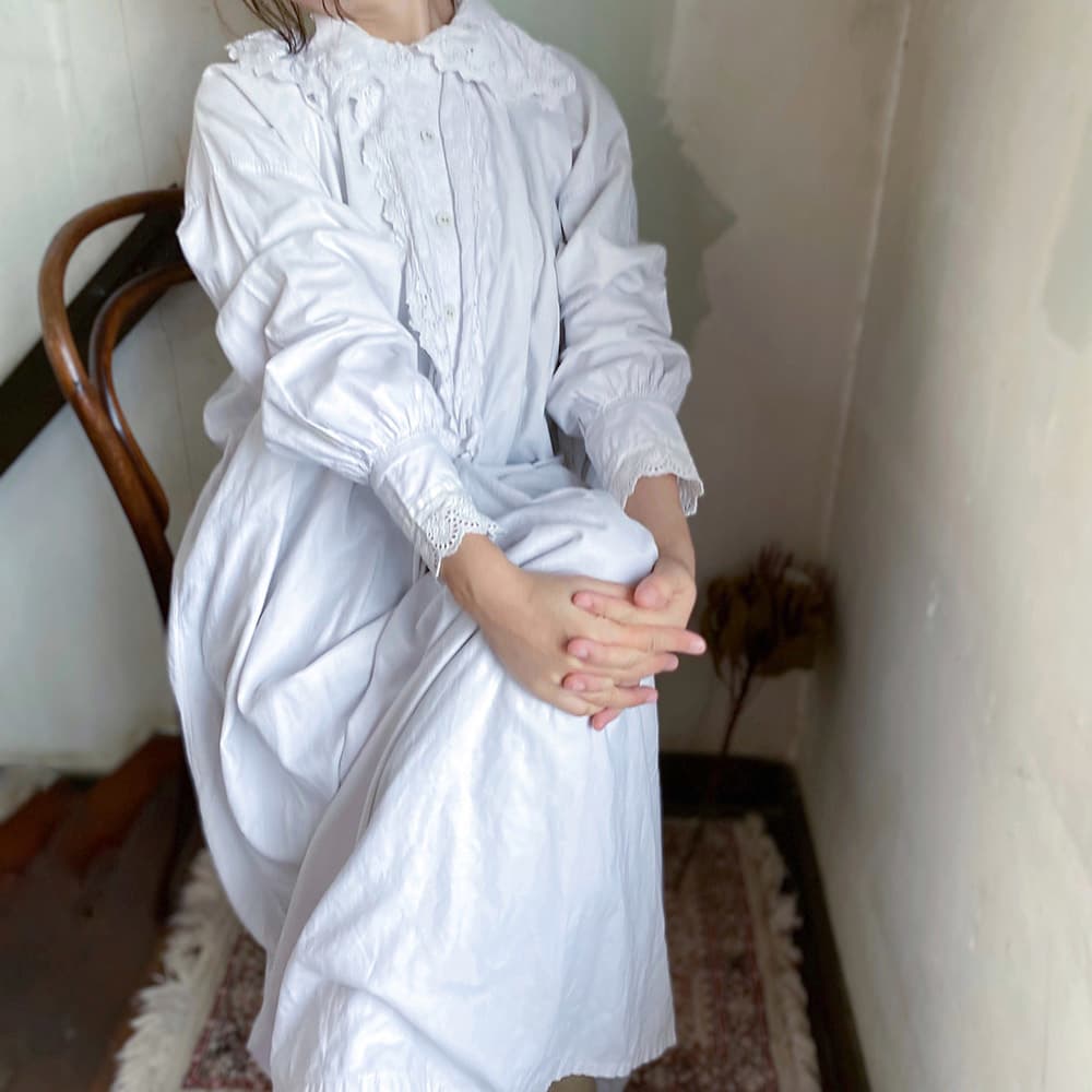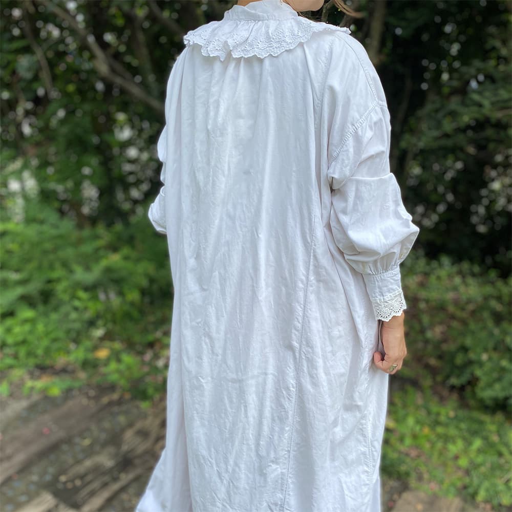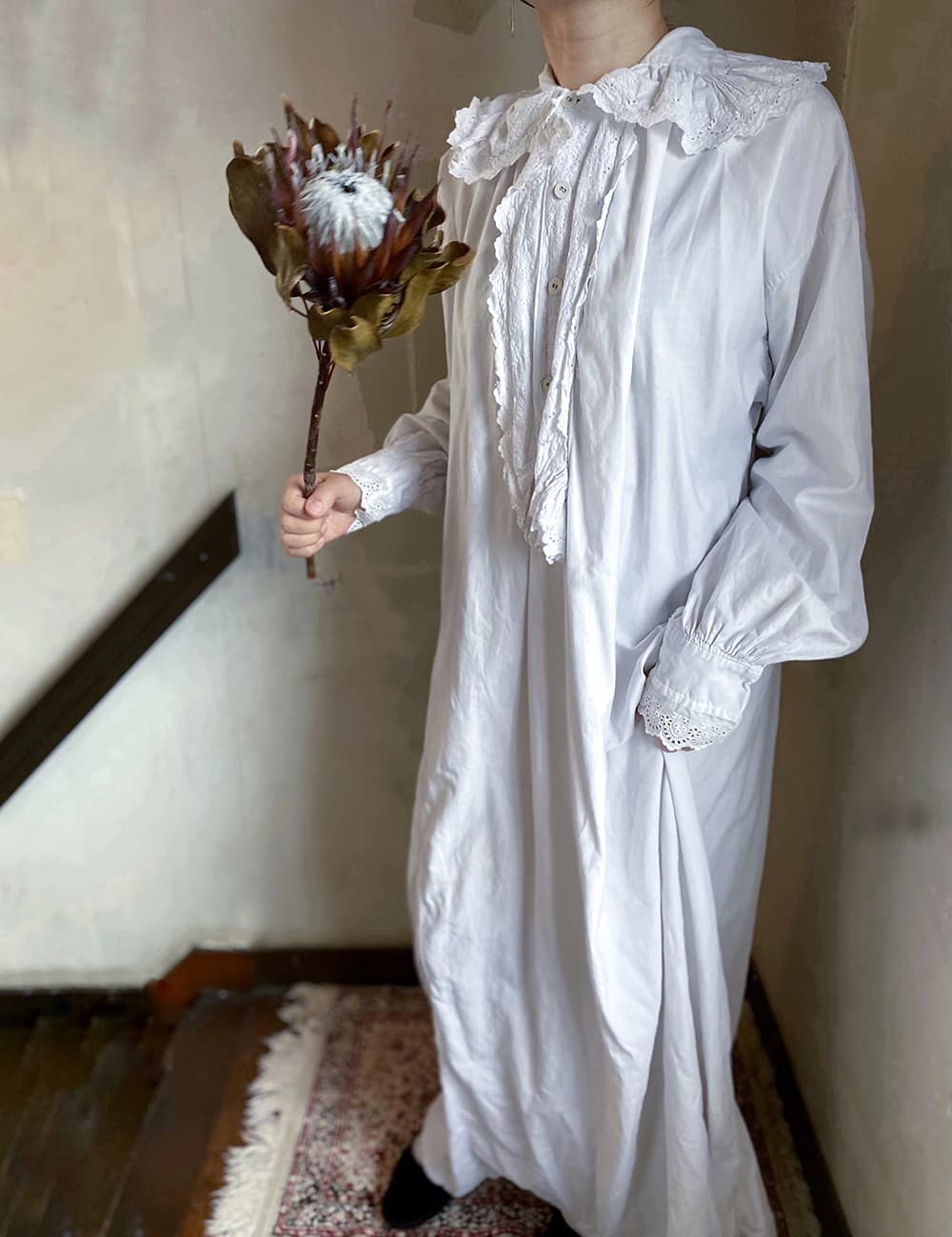 大きな襟と豪華なレースが可愛いフランスアンティークワンピース