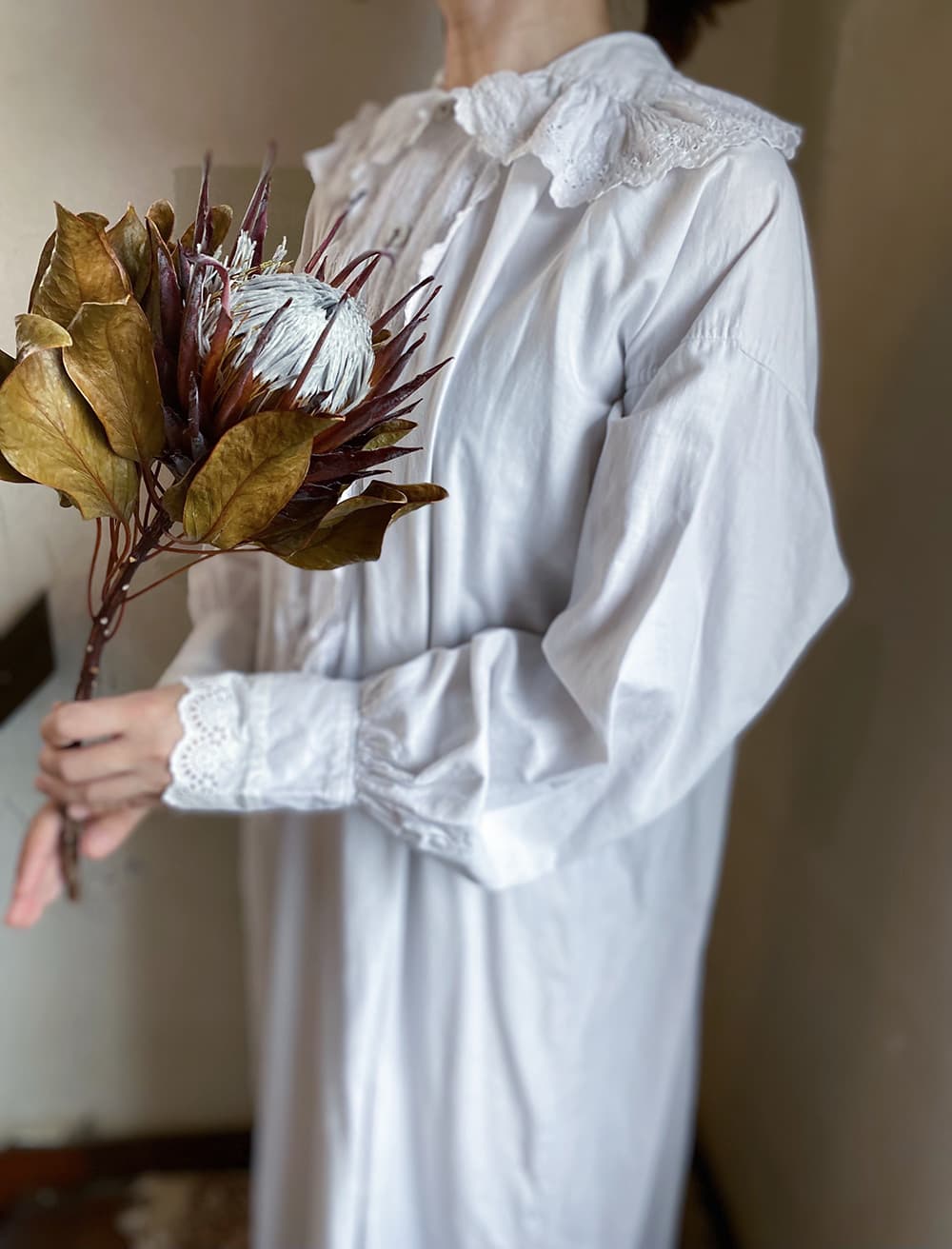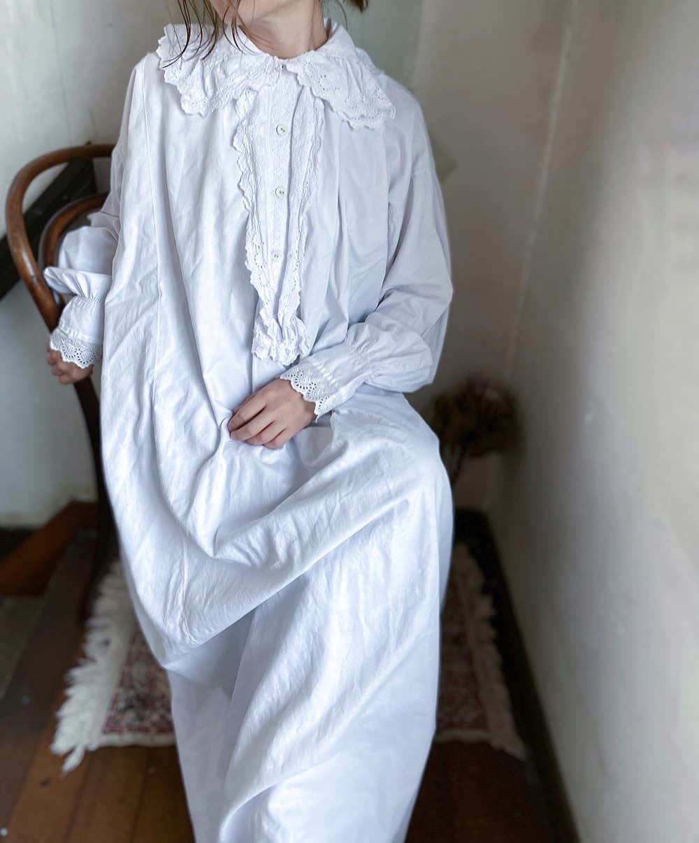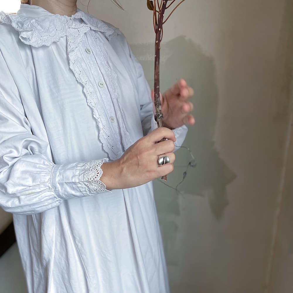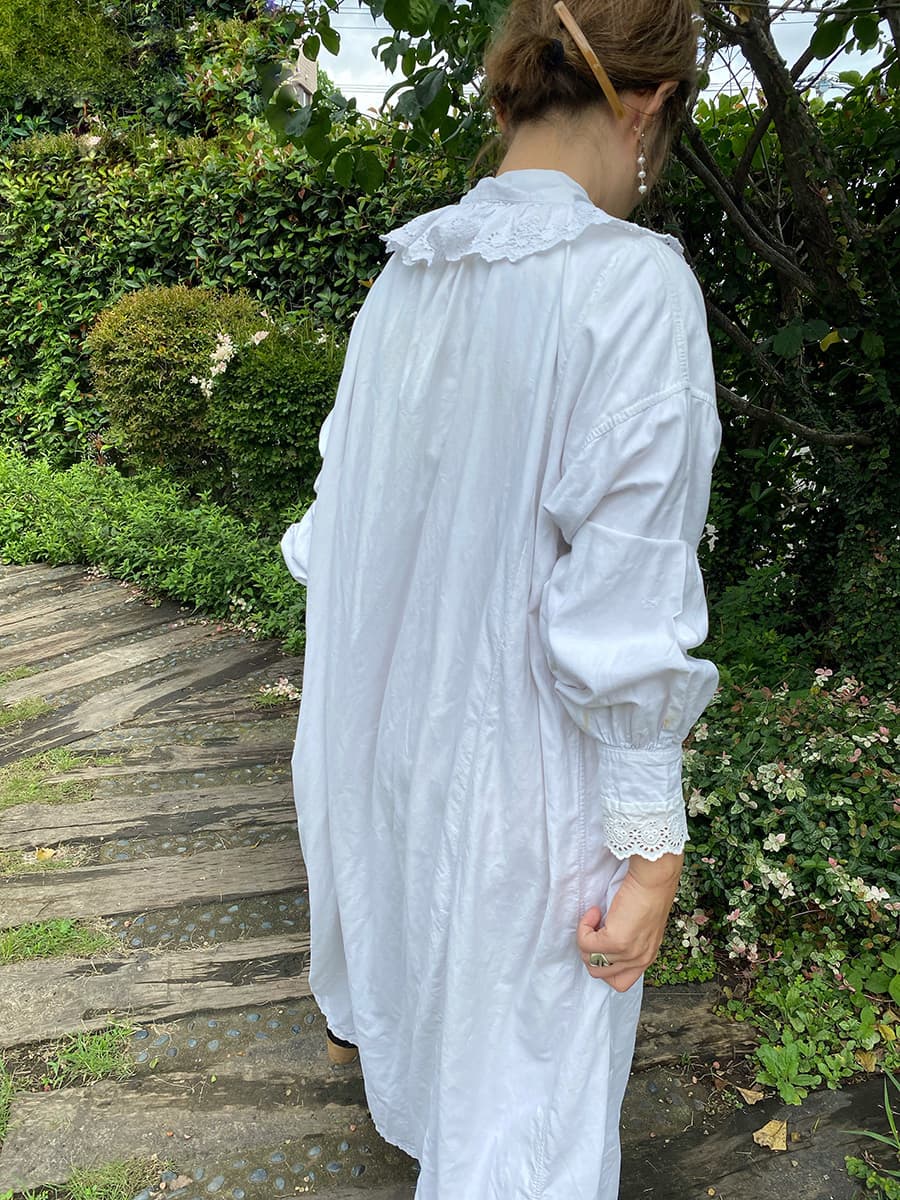 大きな襟と豪華なレースが可愛いフランスアンティークワンピース