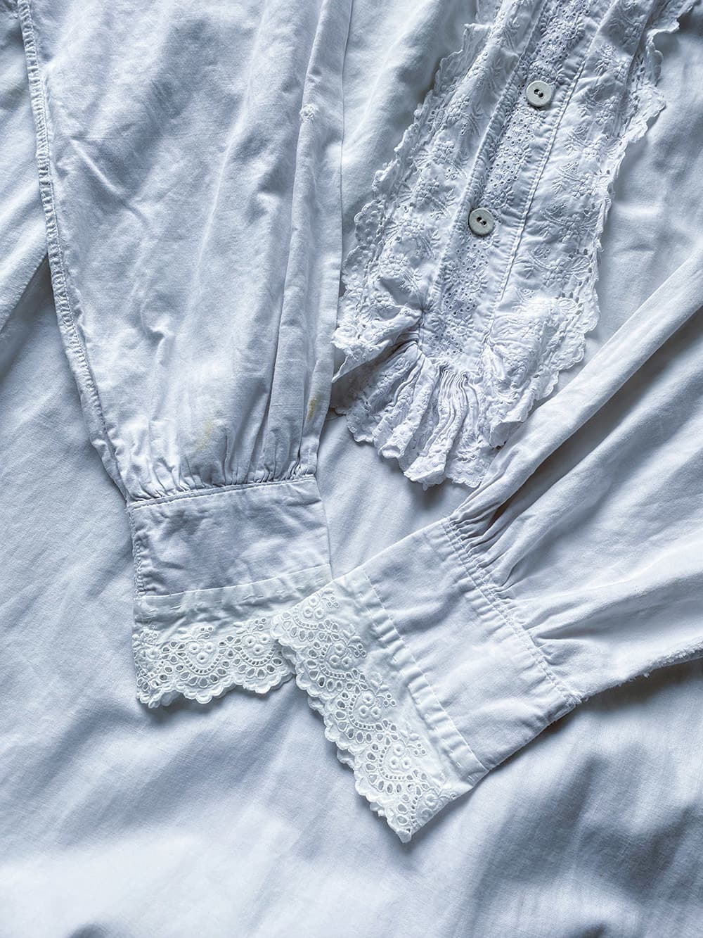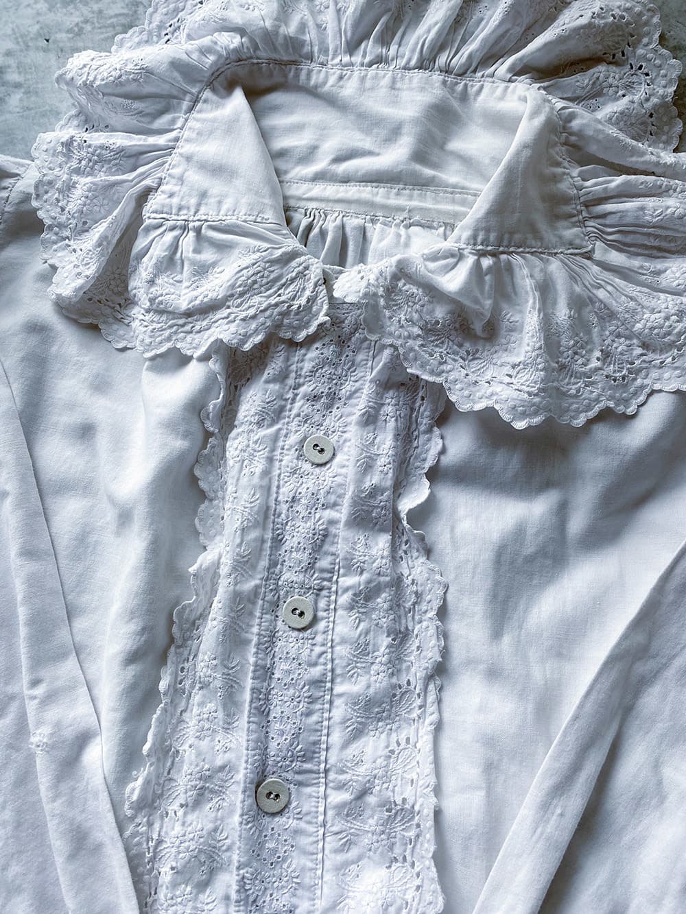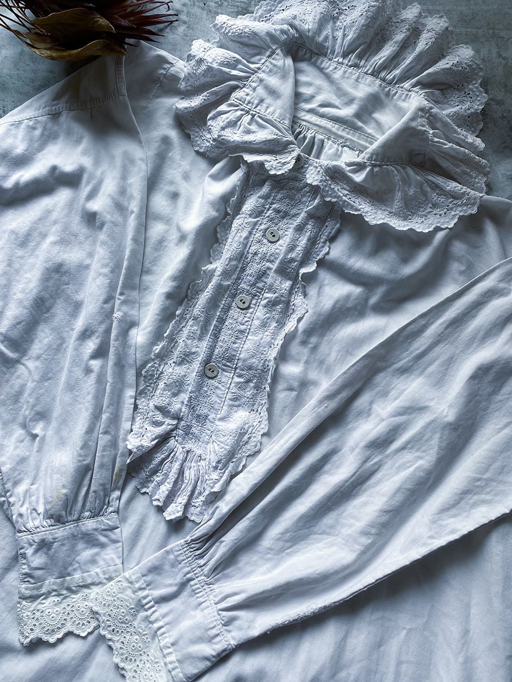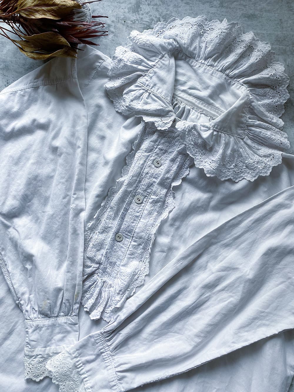 大きな襟と豪華なレースが可愛いフランスアンティークワンピース