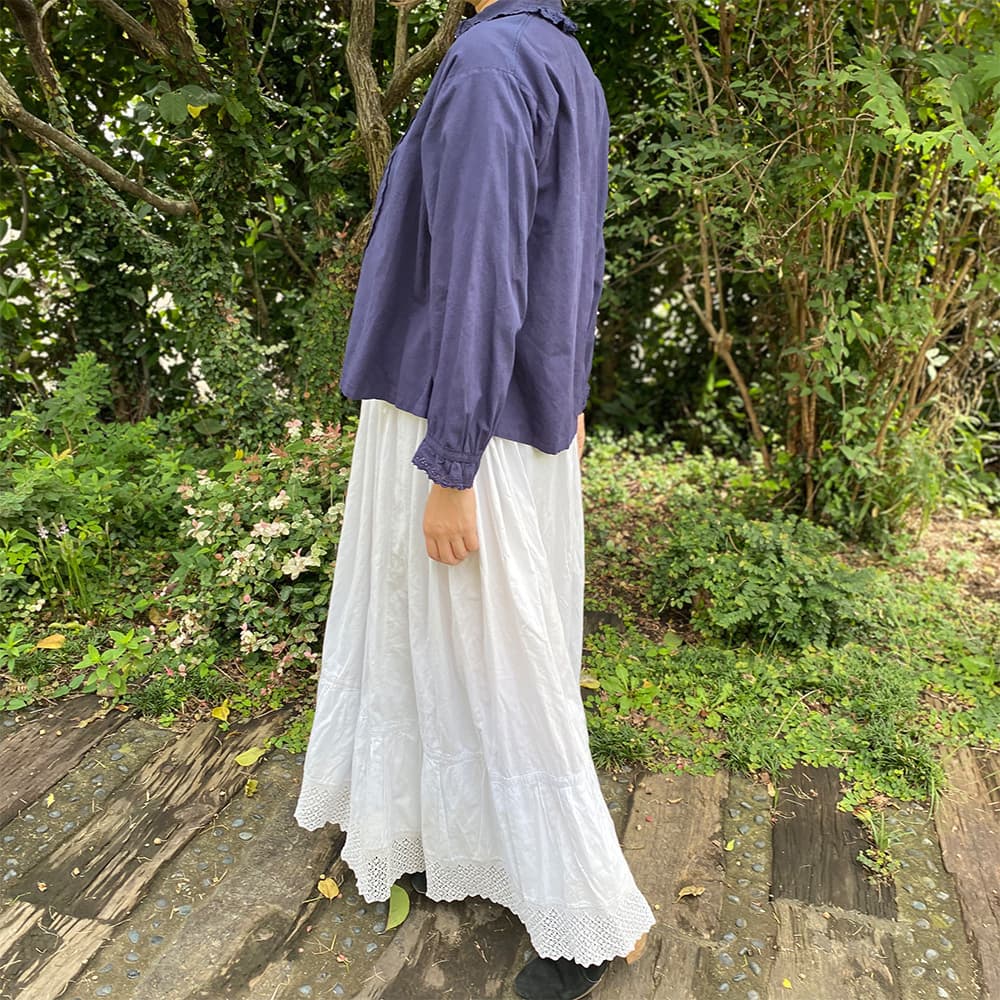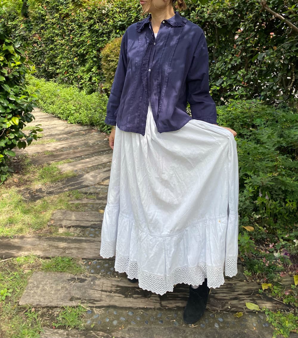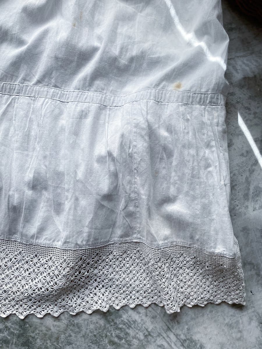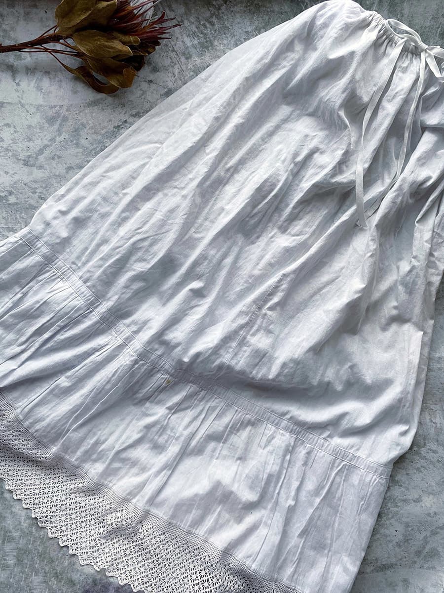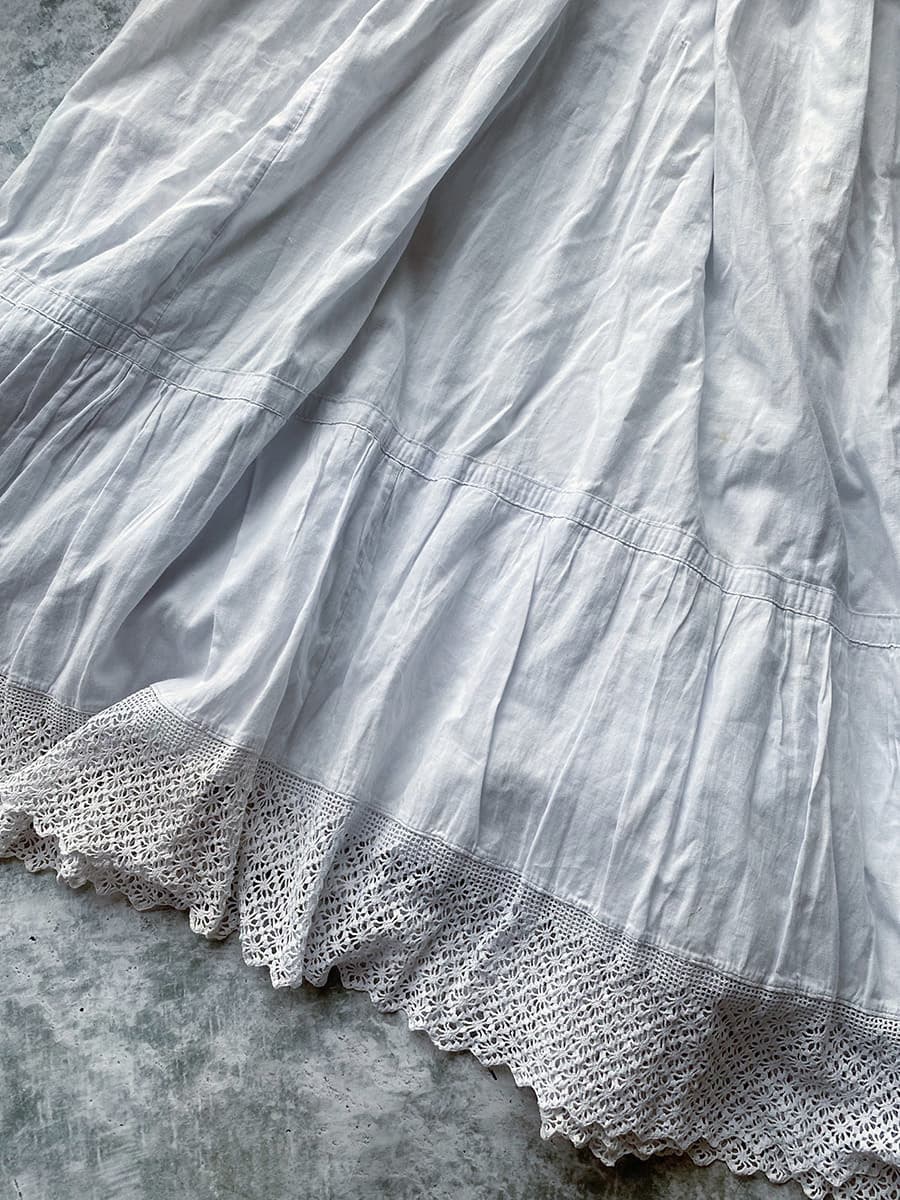 ギャザーたっぷり、手編みレースが美しいアンティークコットンスカート