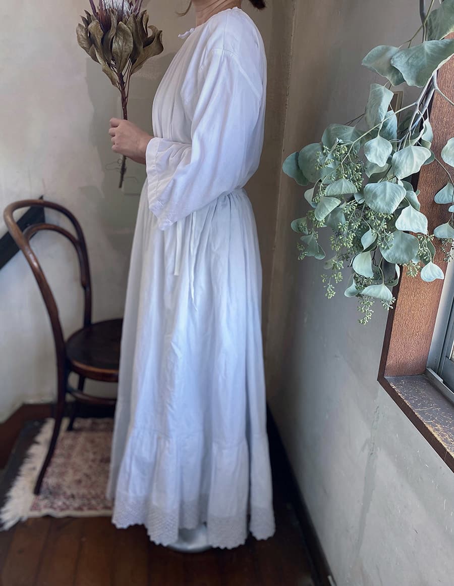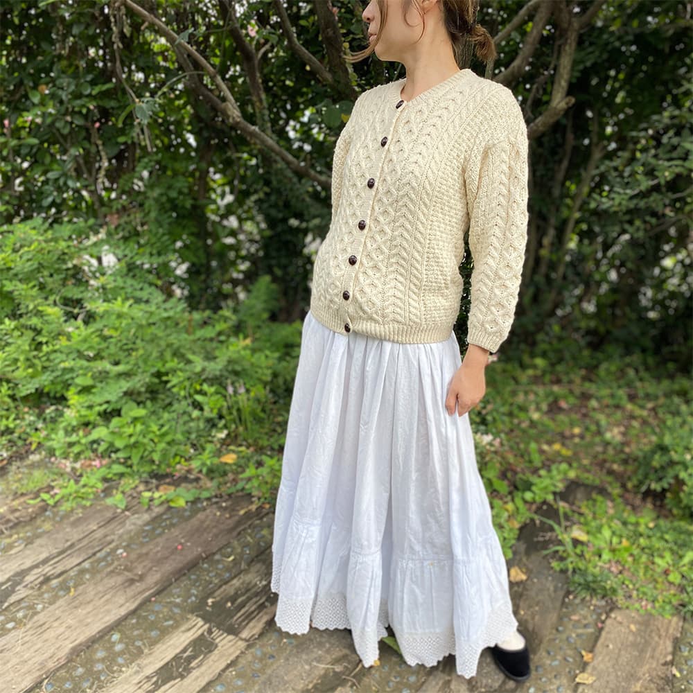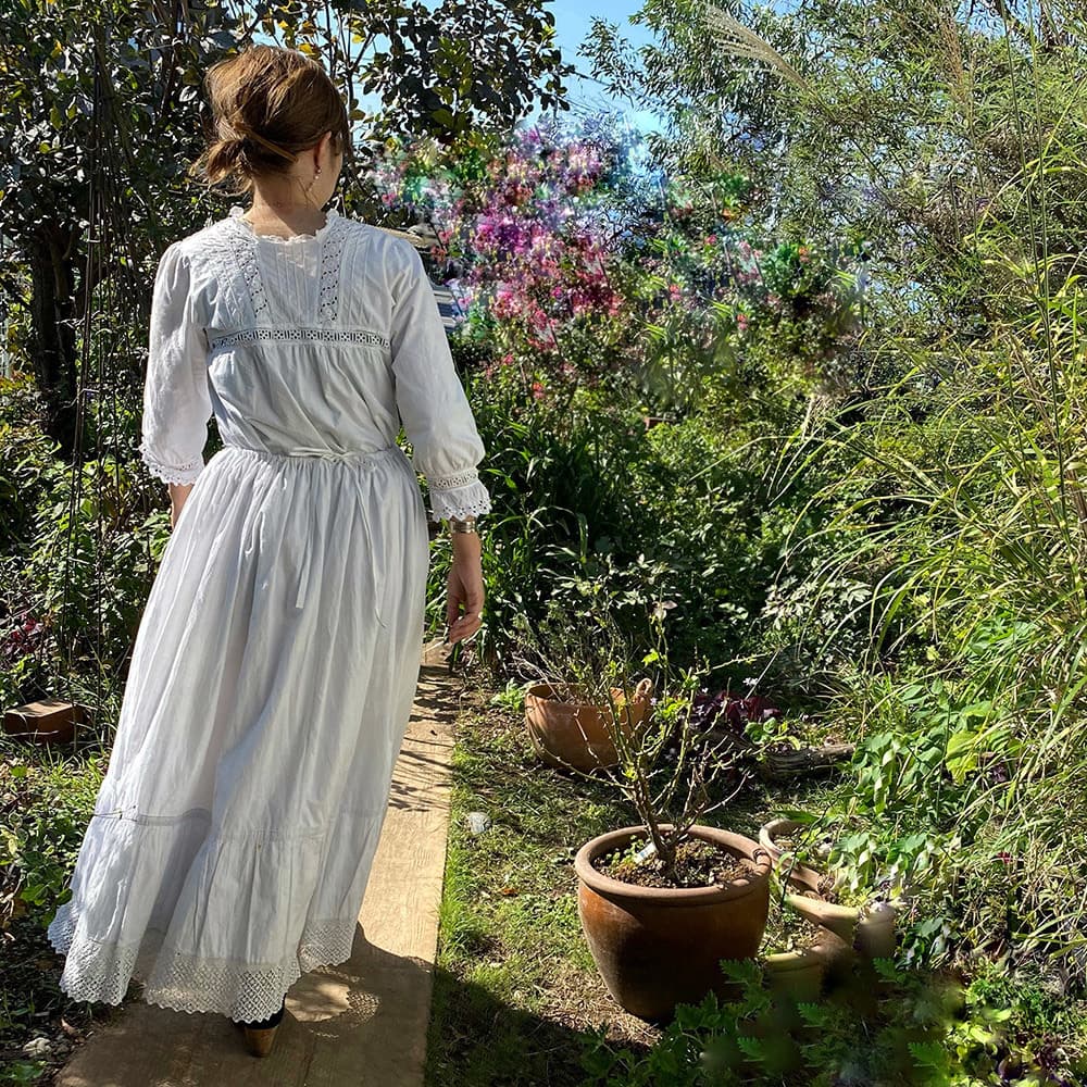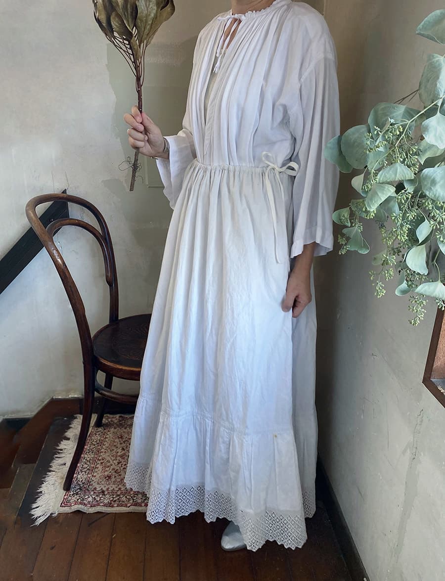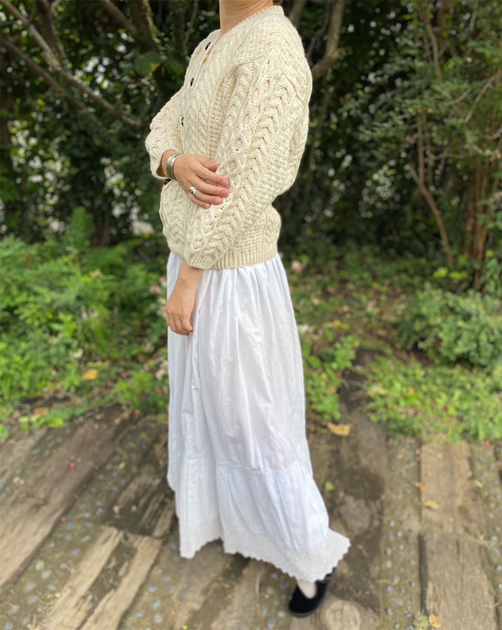 ギャザーたっぷり、手編みレースが美しいアンティークコットンスカート