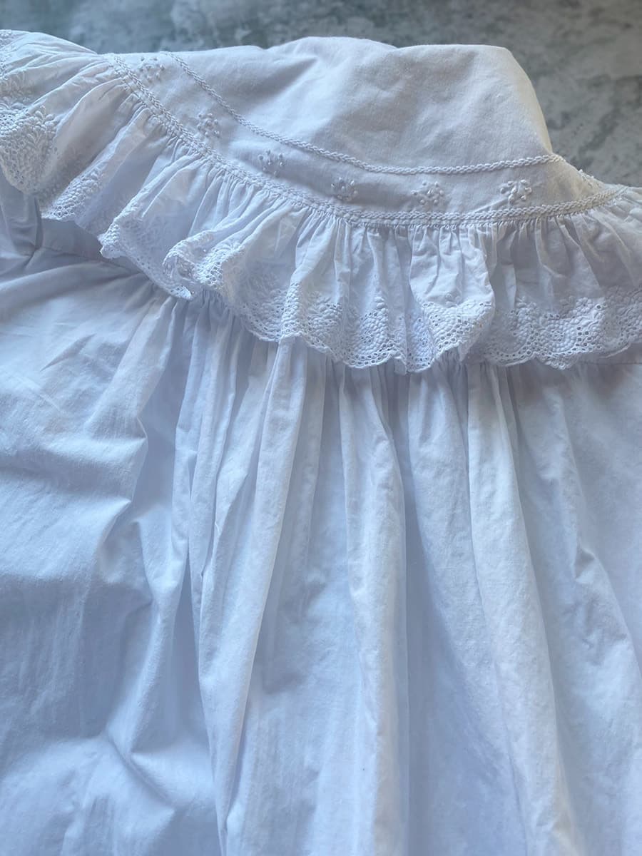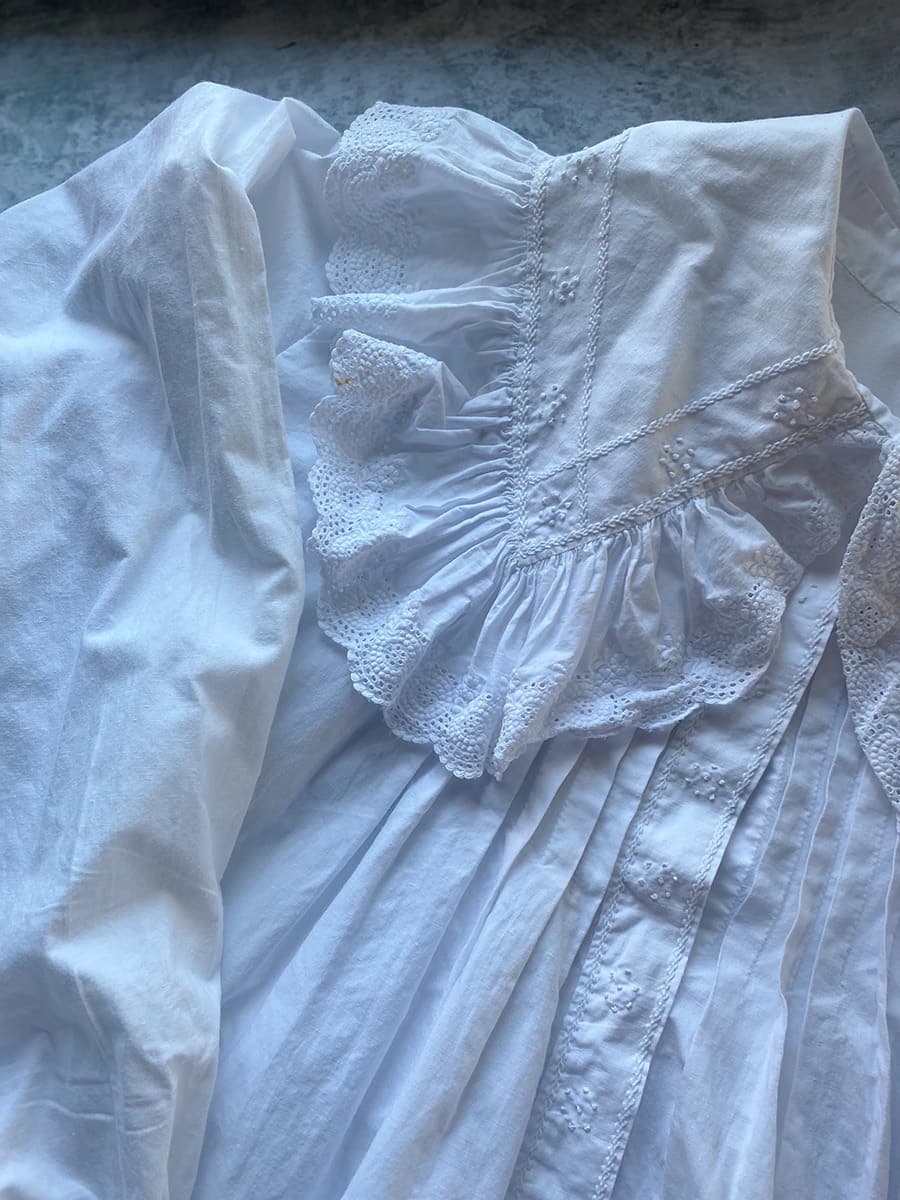 大きな襟とレース、刺繍がポイントのフランスアンティークワンピース