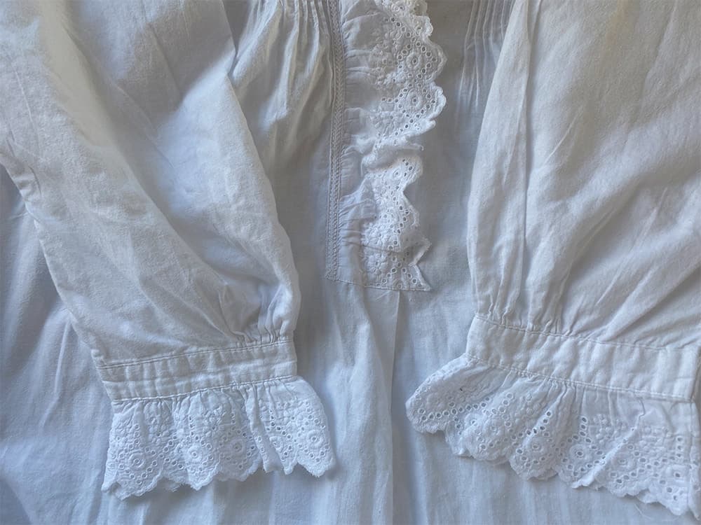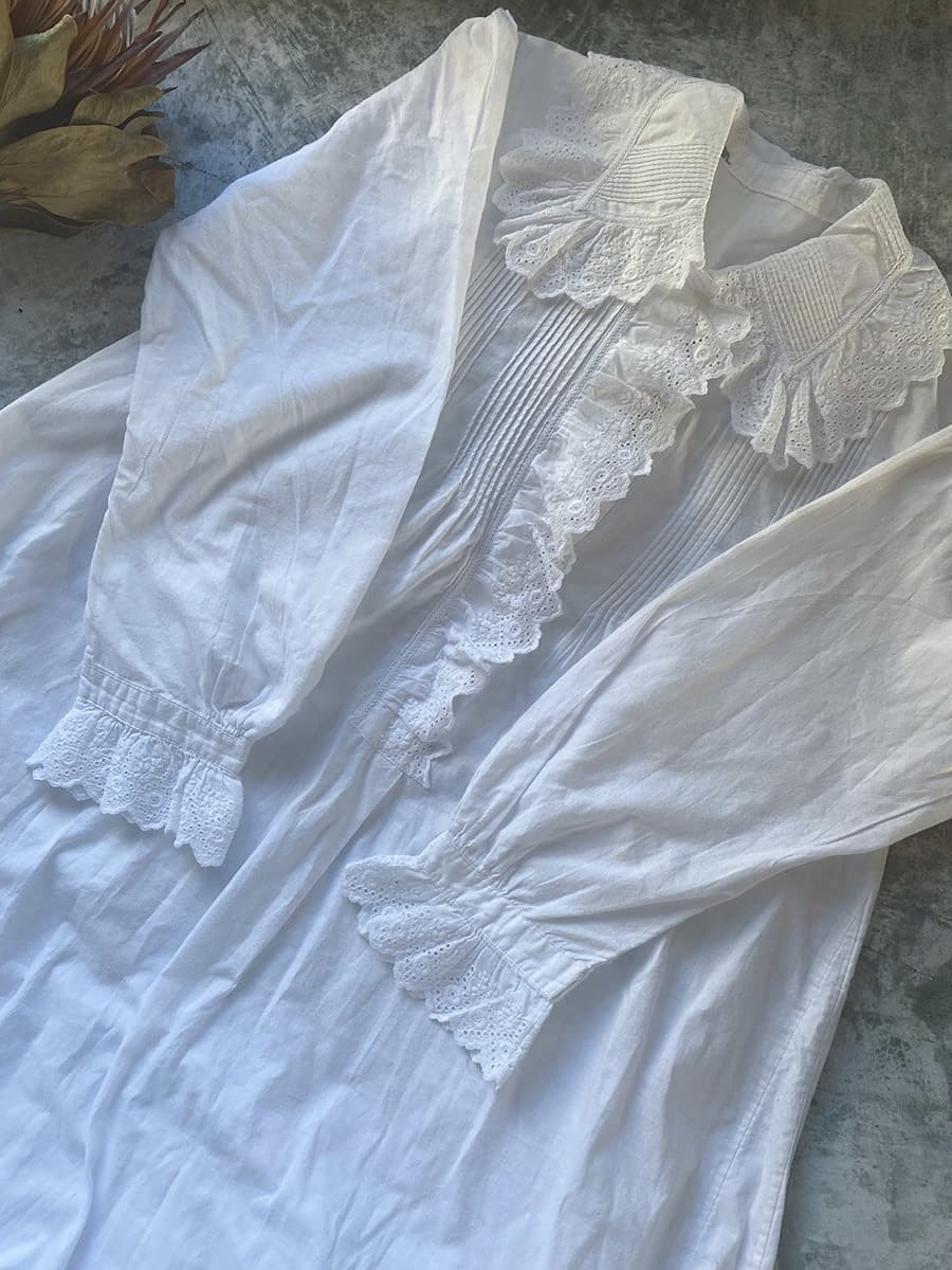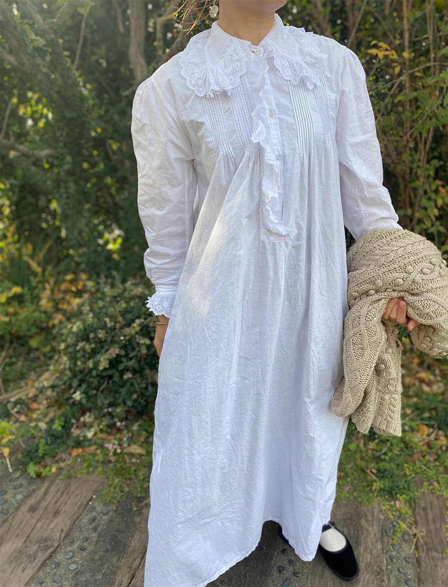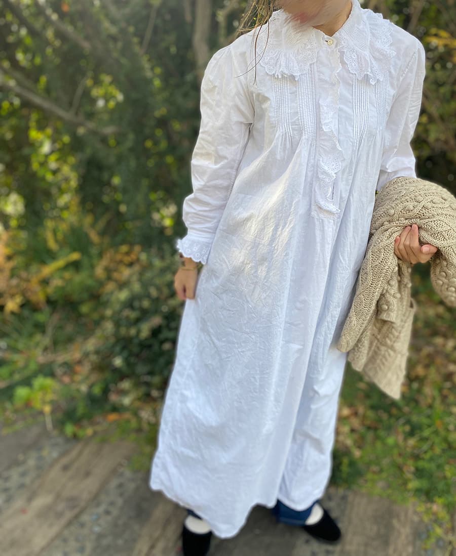 たっぷりのフリルレースが可愛い人気の1900年代フレンチアンティークナイトドレス。