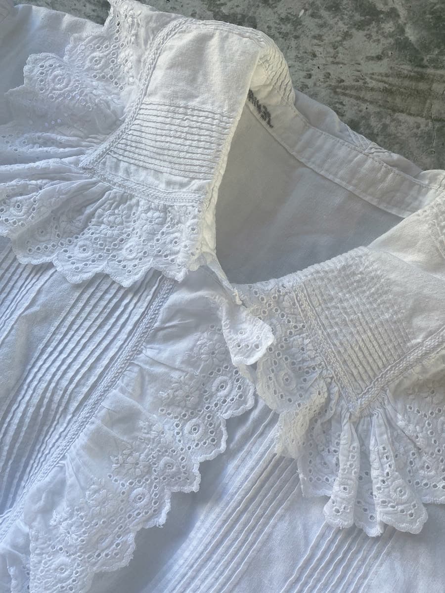 フリル襟とお袖のレースが可愛いフランスアンティークワンピース