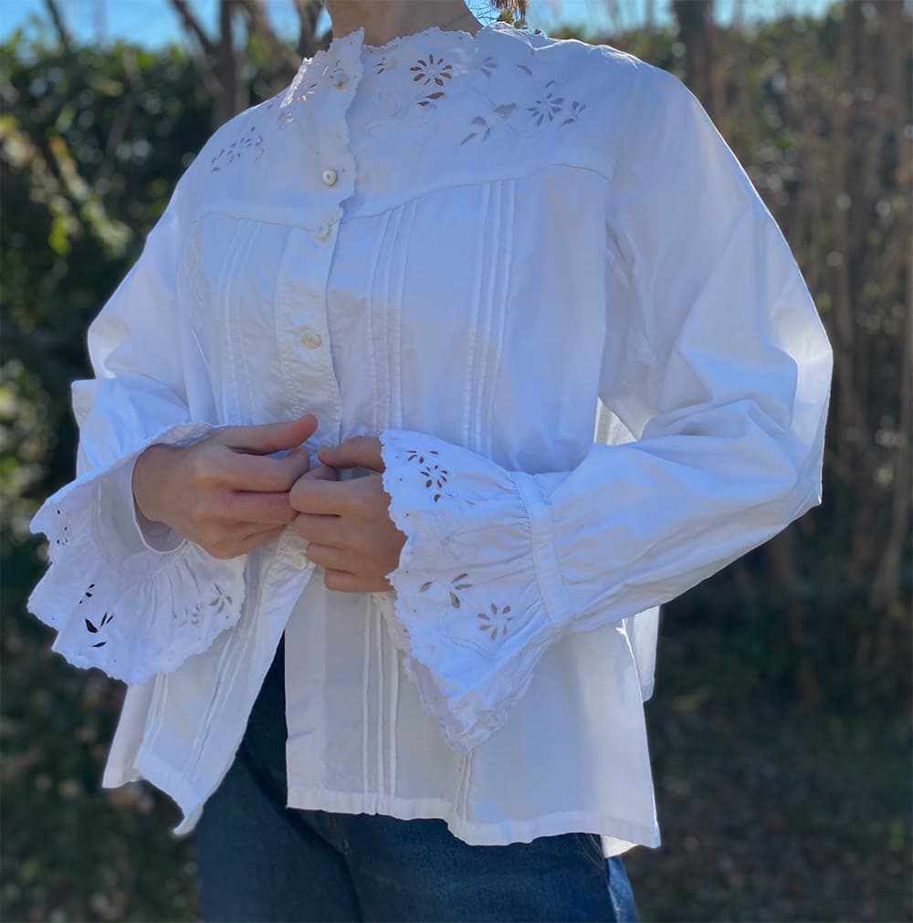 スカラップレースが可愛いフランスアンティークブラウス