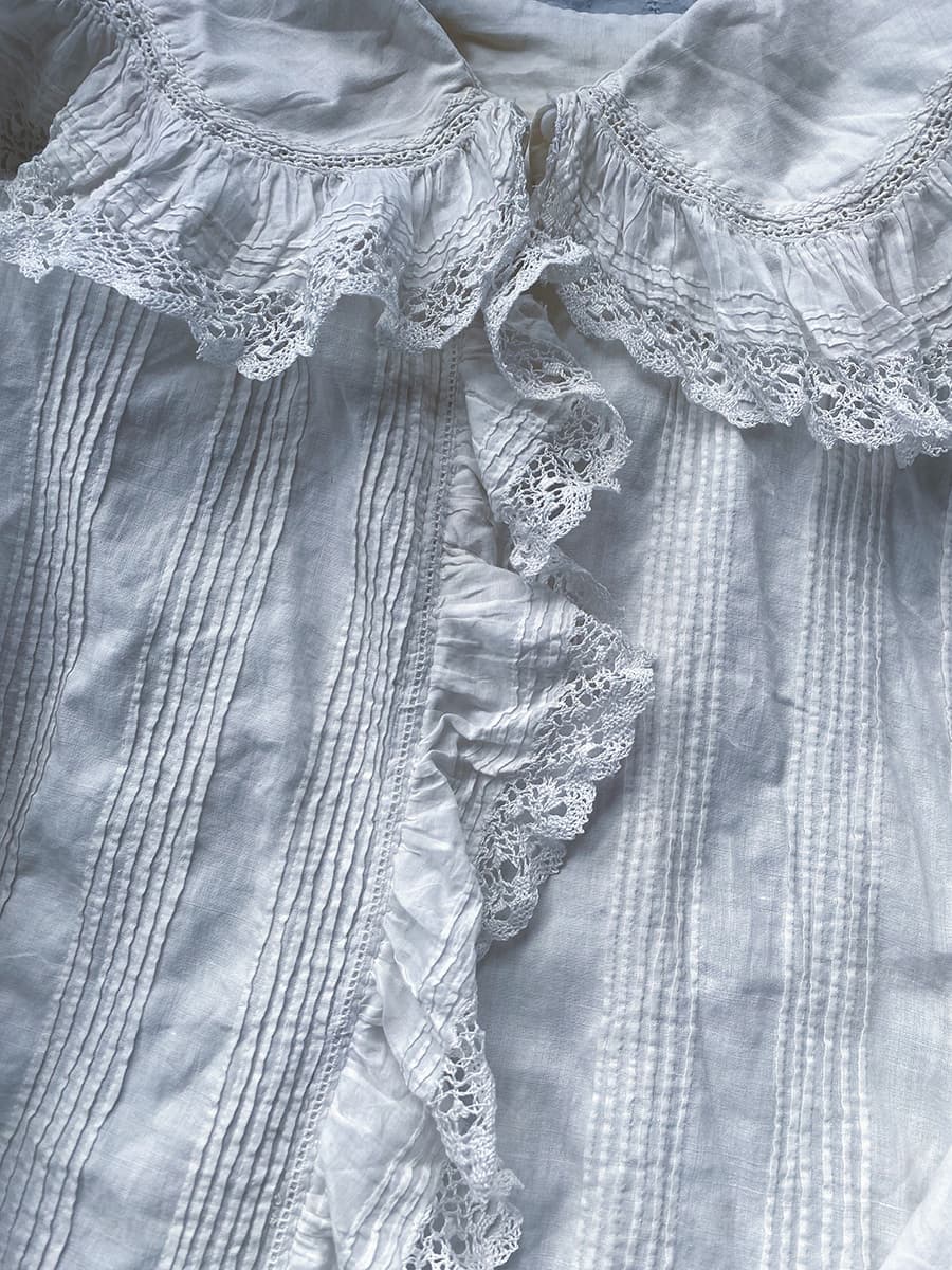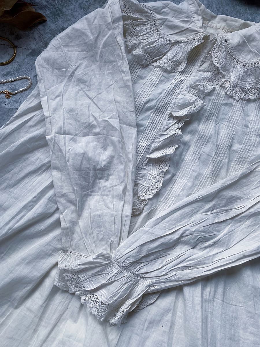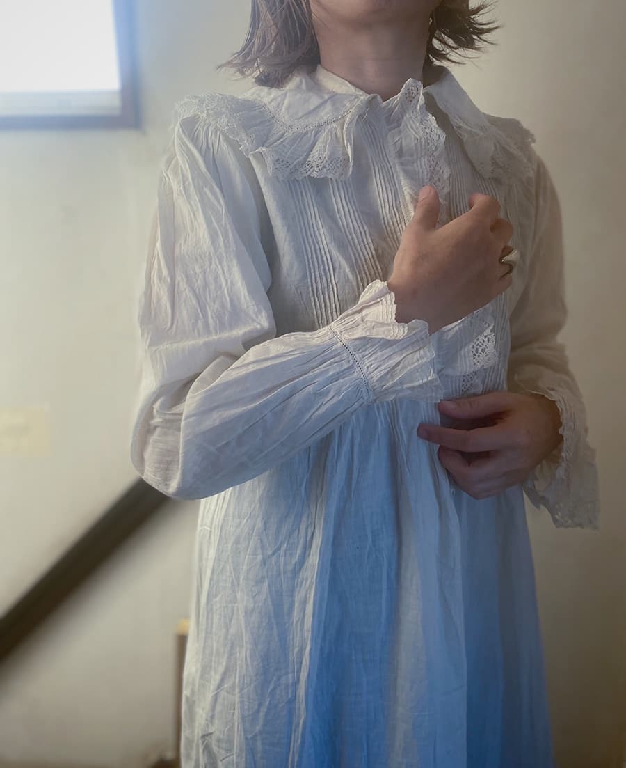 レースの付いたフリルカラーが美しいアンティークナイトドレス。