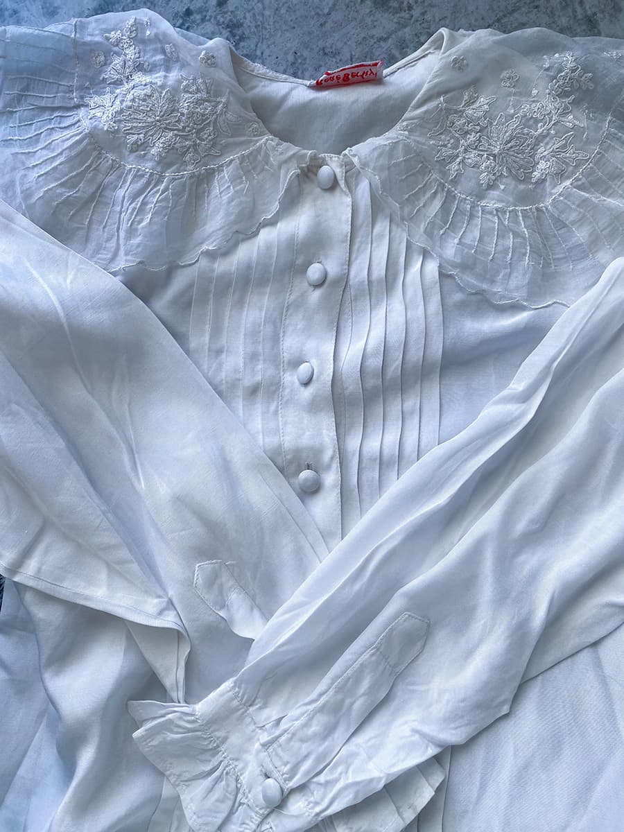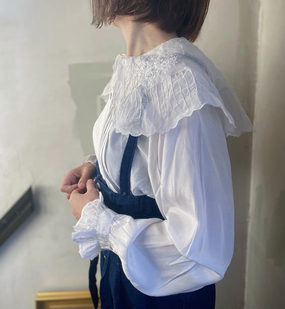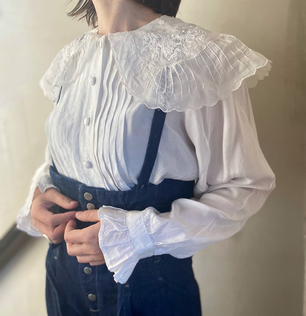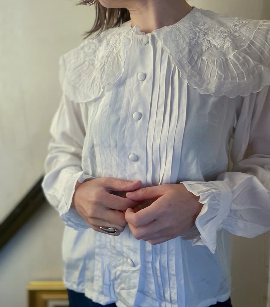 刺繍とレースの豪華な襟が美しいフレンチヴィンテージブラウス