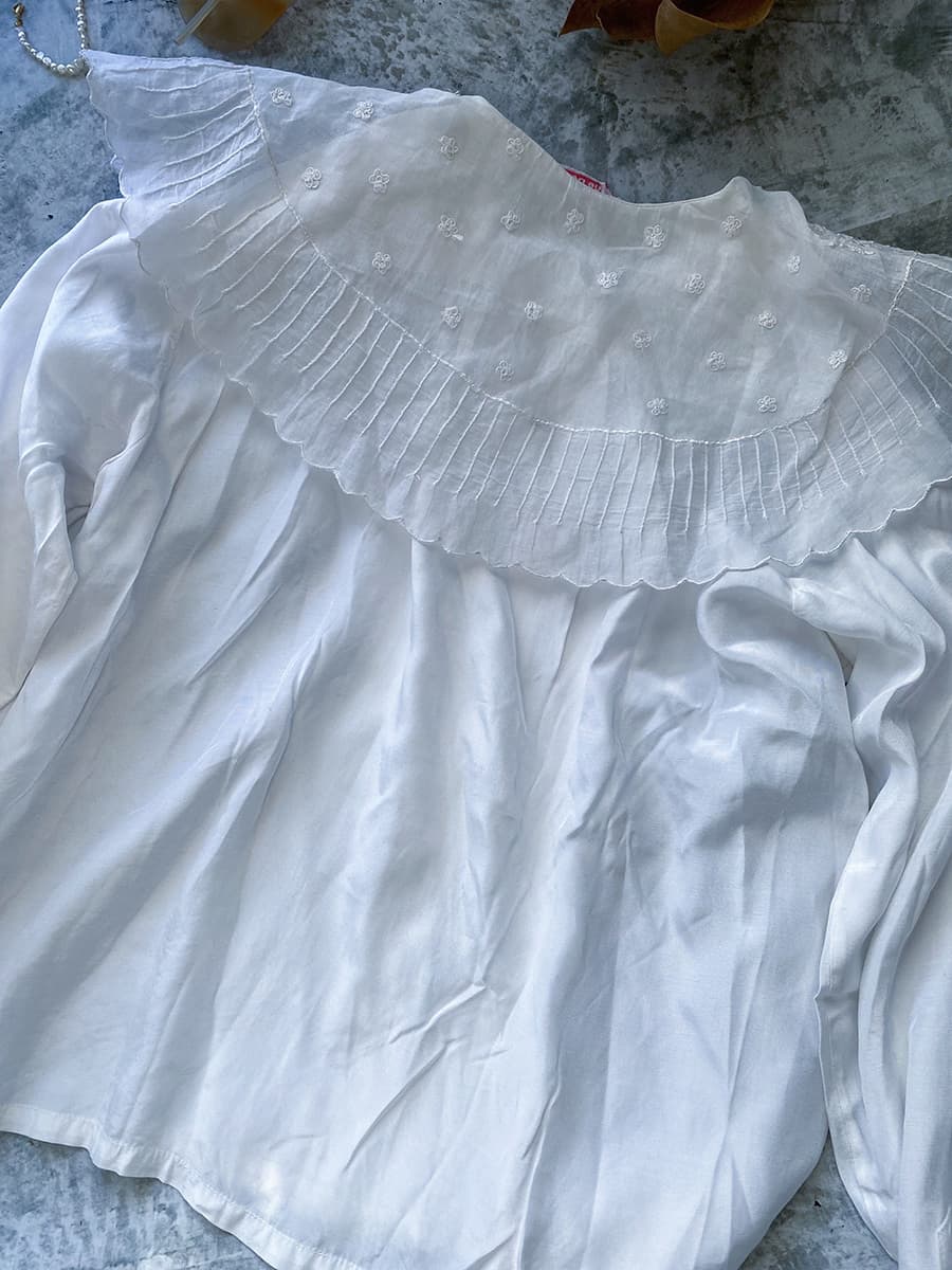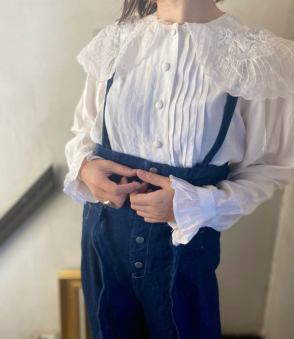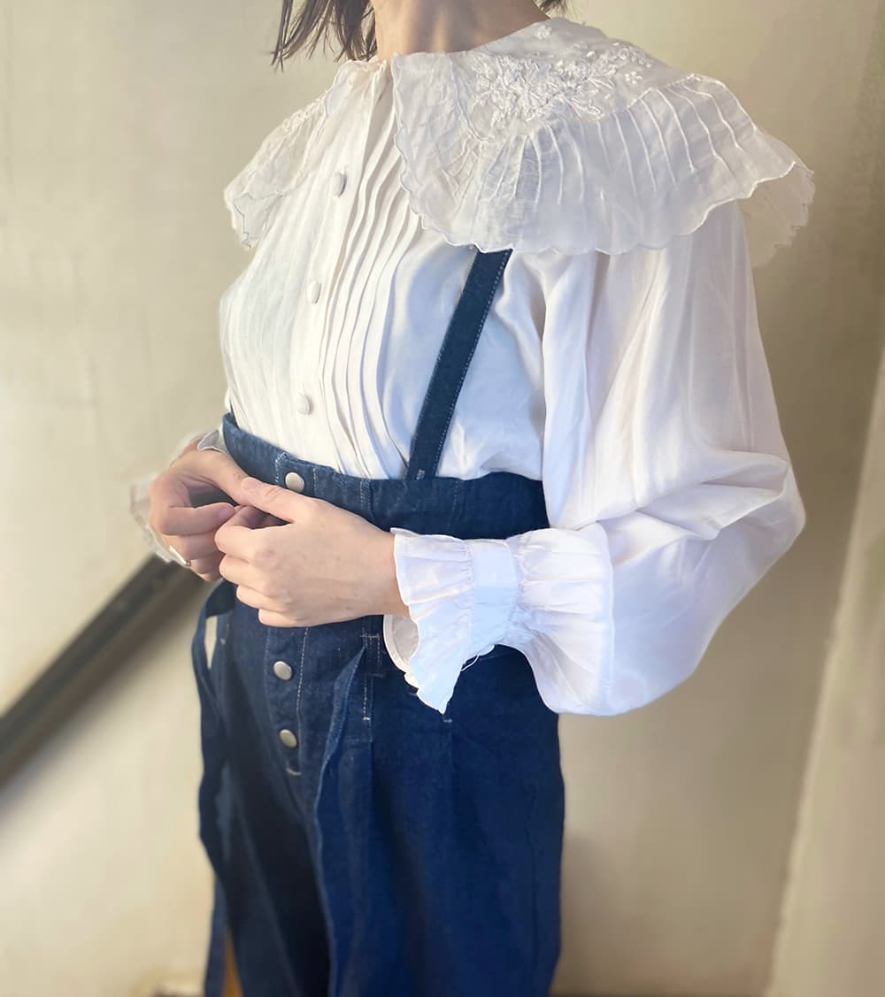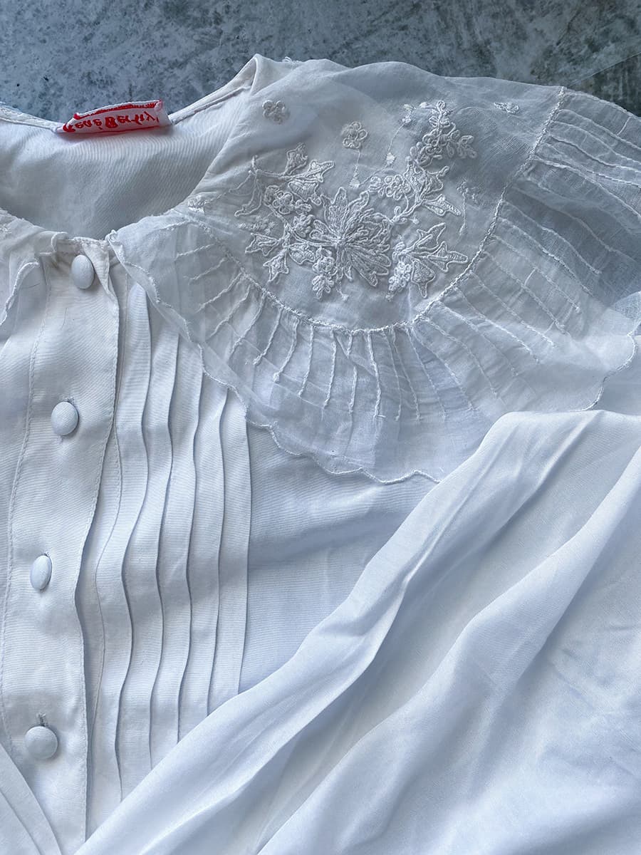 刺繍とレースの豪華な襟が美しいフレンチヴィンテージブラウス