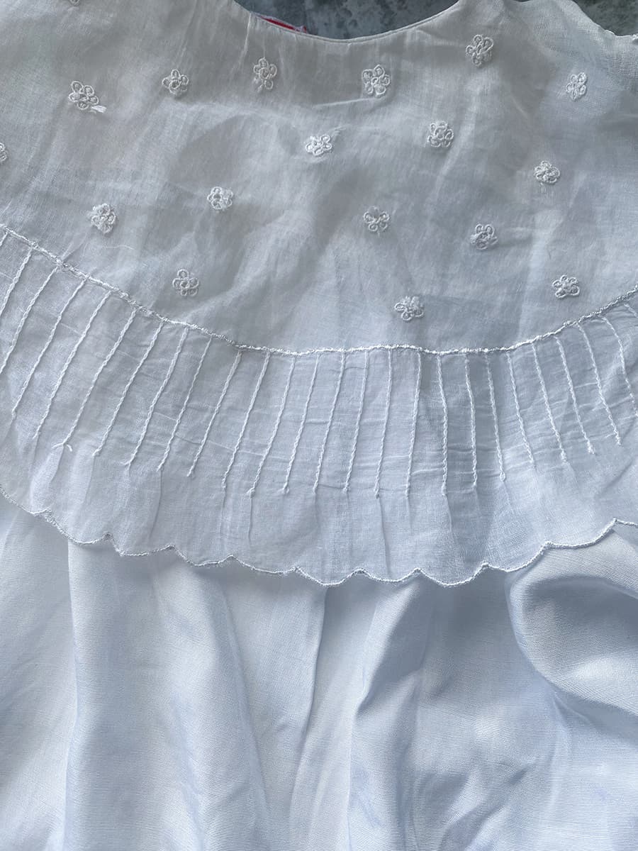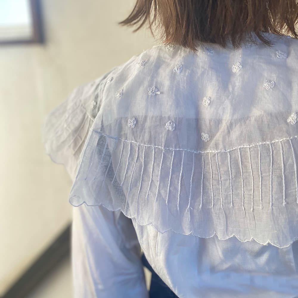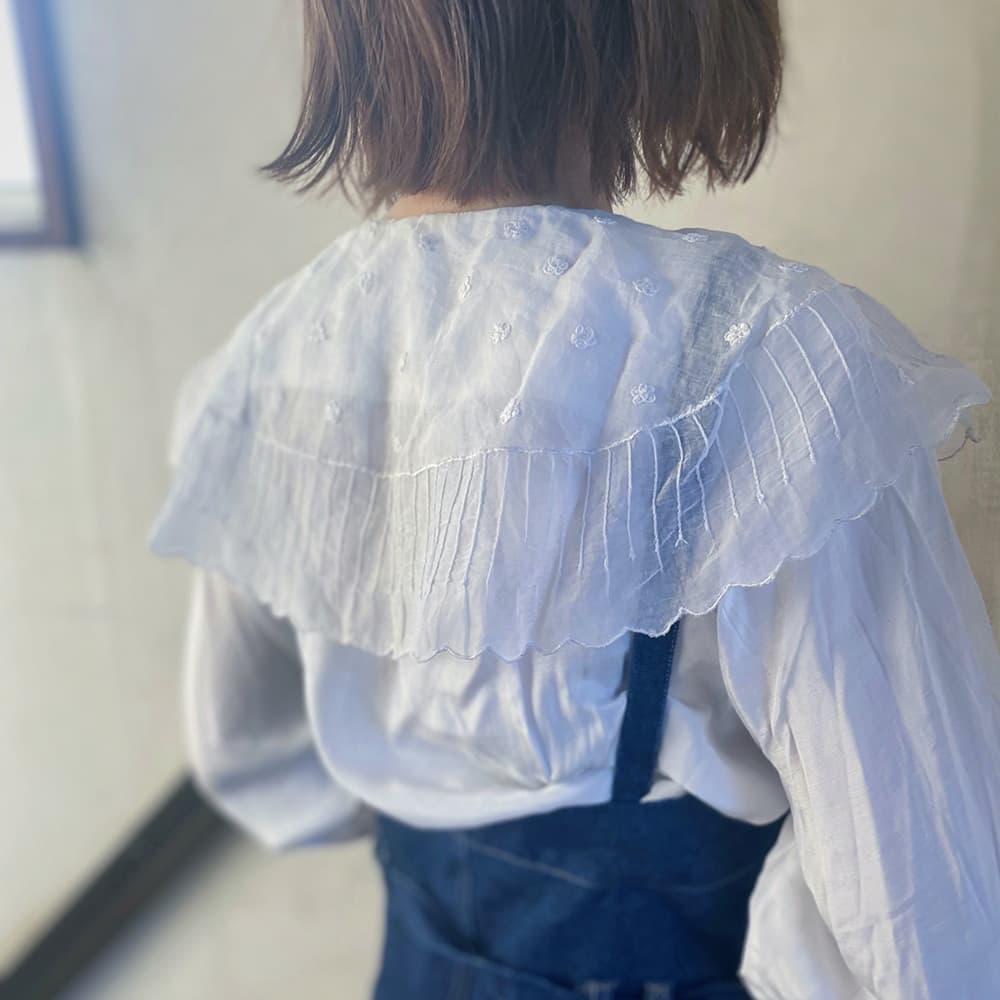 お花模様の刺繍が丁寧に施されたレースの襟が大変美しく、バックスタイルも非常に可愛らしいデザインとなっています。