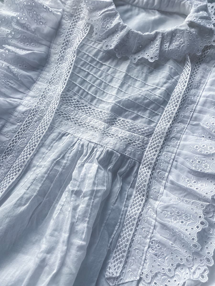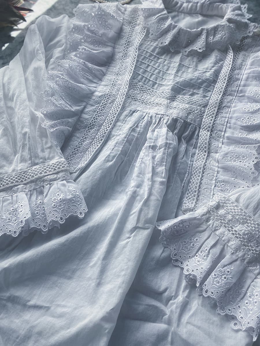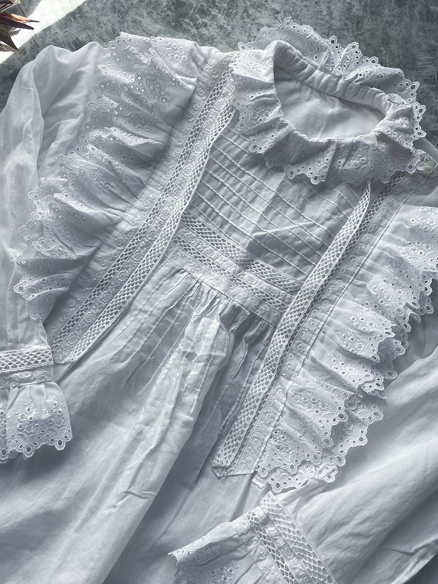 フリルレースの丸襟が可愛らしいヴィンテージコットンブラウス。