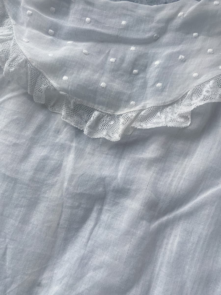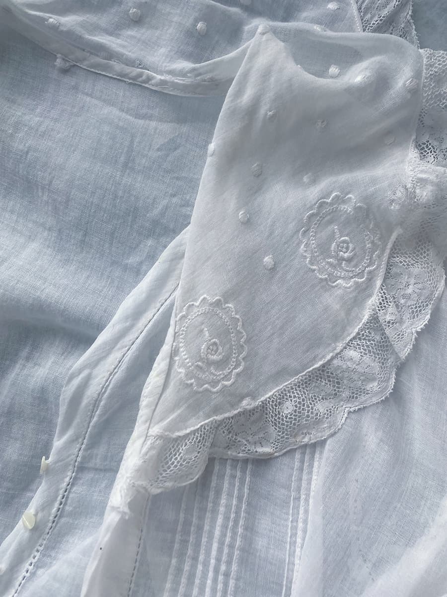 ドット刺繍とレースのセーラーカラーが希少な1900年代イギリスアンティークブラウス