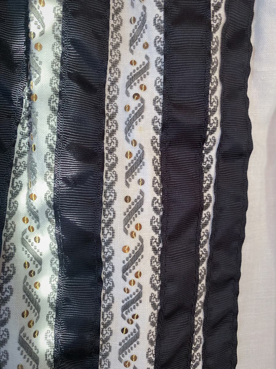 ブラックのリボンテープが入った1900年代ルーマニア刺繍ブラウス