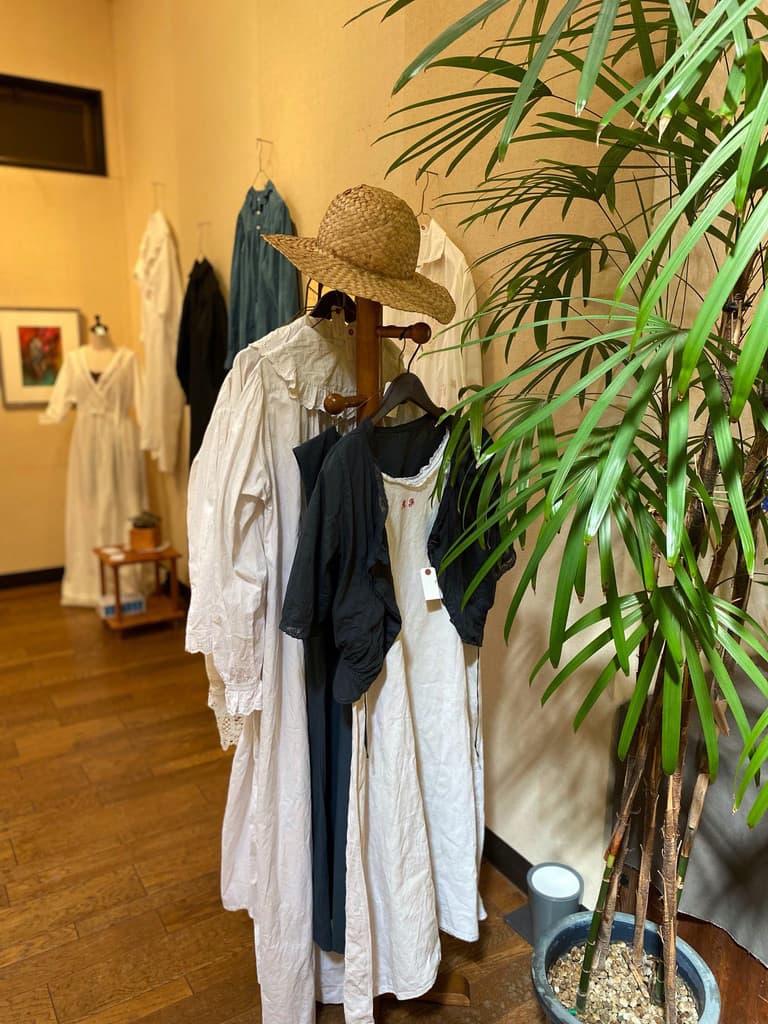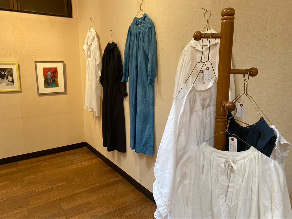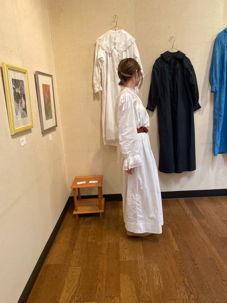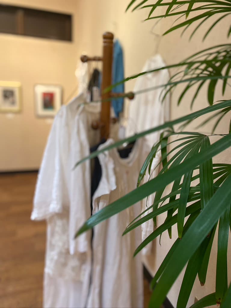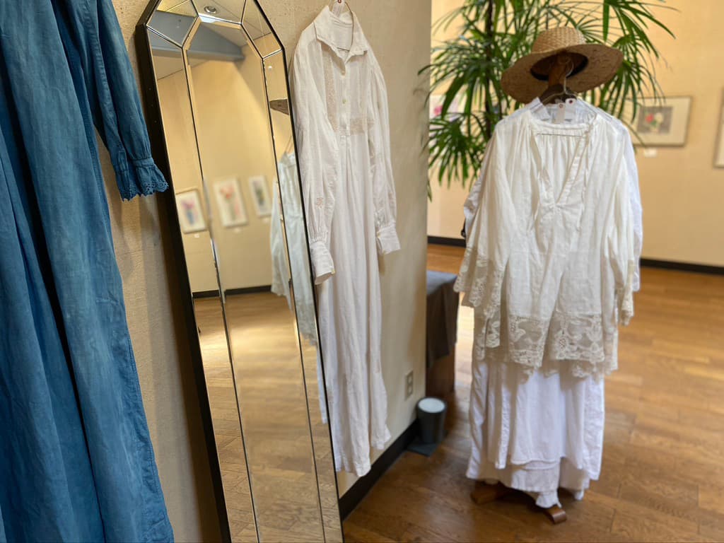山の中に佇む、緑溢れるアートギャラリーにて、Sachiko Morimuraさんの絵画とDew lillyのアンティーク服とのコラボ展を開催しました。